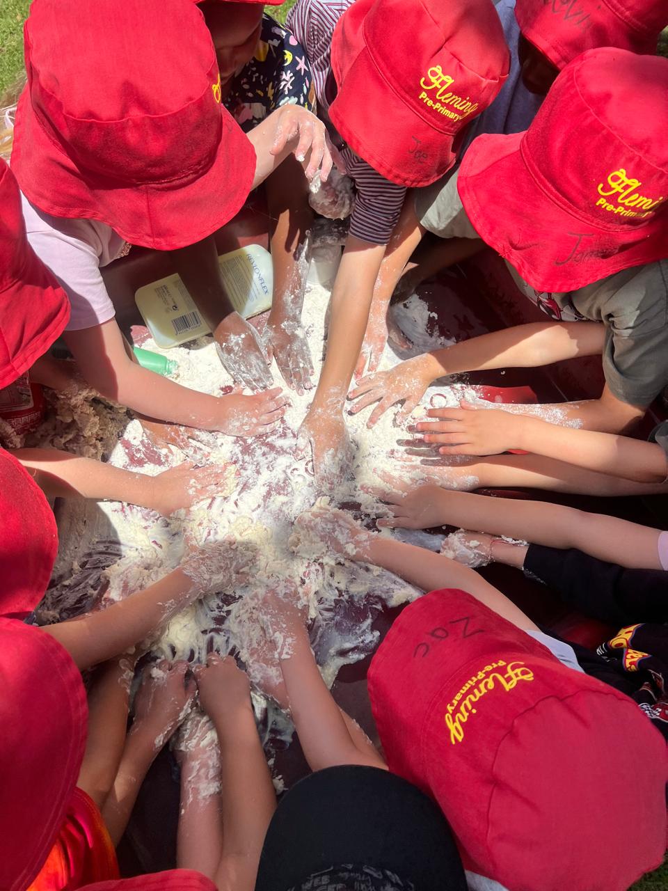 - 08h45: Exploration stations (rotating) creative, perceptual & baking activities